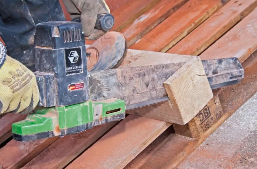 Сабельная пила Eibenstock EDB 480.1 с двумя лезвиями представляет собой профессиональный инструмент для промышленного и гражданского строительства, предназначенный для резки широкого спектра материалов: пустотелого кирпича, пластмассы, пенобетона, древесины и высокоплотного изоляционного материала. Её ключевой особенностью являются два противофазно направленных полотна, которые полностью компенсируют вибрации и позволяют вести пиление без обратных толчков, обеспечивая точность и контроль. Мощный электродвигатель на 1800 Вт в сочетании с длиной реза 480 мм гарантирует высокую производительность при работе с крупными заготовками. Для повышения надёжности и комфорта пила оснащена системой обдува, защищающей редуктор и пользователя от пыли, а также эргономичной рукояткой с возможностью установки с обеих сторон корпуса для удобства работы в различных положениях.