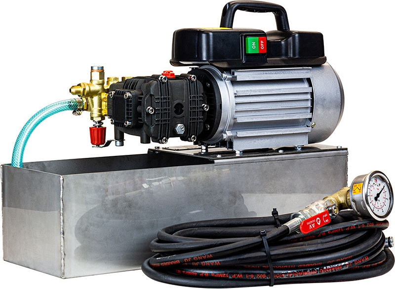 Электрический опрессовочный насос Brexit BrexTest Inox Pro 9000 – опрессовщик электрический гидравлический для точных и быстрых гидравлических испытаний на прочность и герметичность трубопроводов и другого оборудования, работающего под давлением; монтажа, обслуживания и ремонта инженерных коммуникаций и теплообменников; опрессовки различных емкостей и гидравлических систем трубопроводов давлением до 90 бар, с производительностью до 8 л/мин, при работе в условиях умеренного климата.