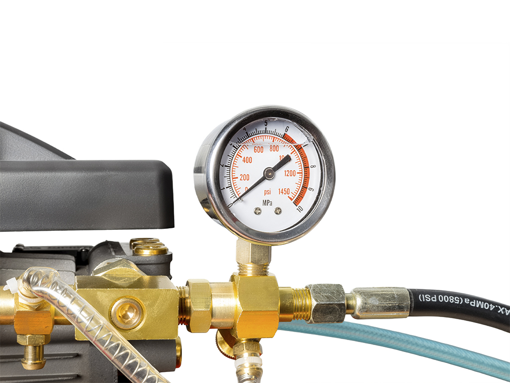 - Насос способен создавать в системе давление до 60 бар, что делает его пригодным для большинства типов испытаний систем водоснабжения, отопления и других гидравлических контуров.
