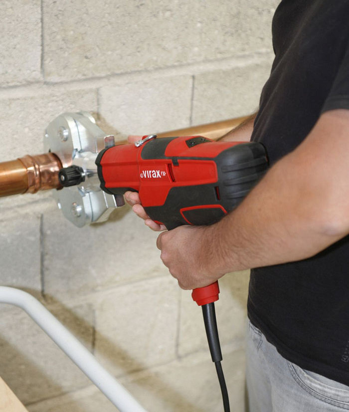 Virax Viper P30+ один из самых легких прессов в своем классе. Обжим до 110мм МПТ и до 54мм медных труб. Без клещей, в кейсе.