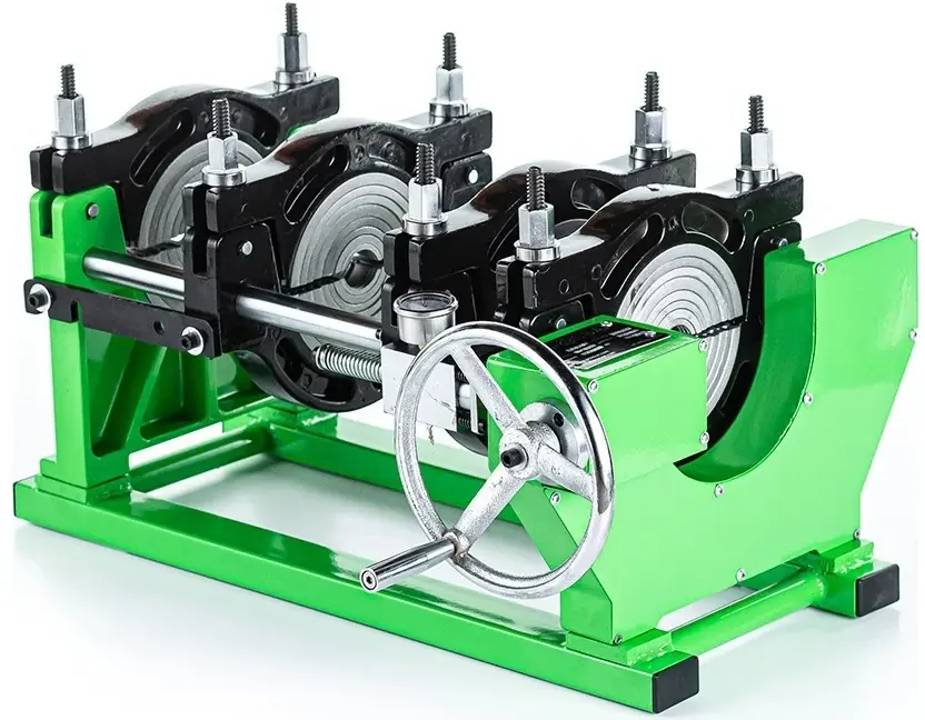 - Механическое управление оснащено редуктором и манометром, контролирующим давление во время стыковки труб