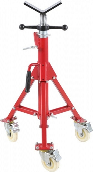 Складная регулируемая V-образная трубная опора на колесах Rotorica 1/2-12 представляет собой профессиональное оборудование для работы с трубами диаметром от 20 до 325 мм (1/2" – 12") и обеспечивает надежную поддержку труб при выполнении различных технологических операций: сварке тяжелых и фасонных элементов, накатке желобков, нарезке резьбы, резке, снятии фасок и вырезании отверстий. Конструкция опоры включает V-образную роликовую систему с регулируемой высотой и углом наклона, усиленную стальную раму с антикоррозионным покрытием, поворотные колеса с фиксаторами и складной механизм для удобства транспортировки и хранения.