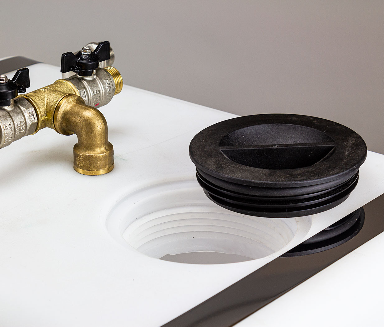 - Трехходовой кран позволяет сливать использованный раствор и заменять на новый без остановки процесса промывки, что сокращает время очистки