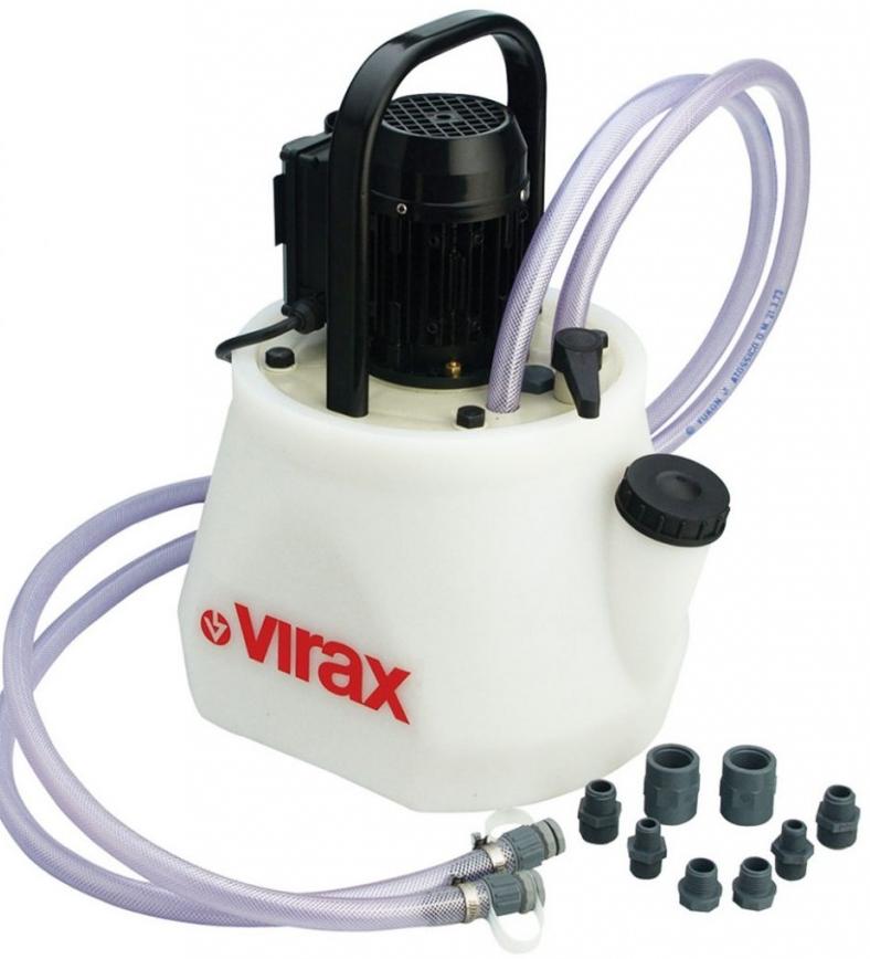 Промывочный насос для снятия накипи Virax оснащен реверсом потока, чтобы сбивать осадок в 2х направлениях.