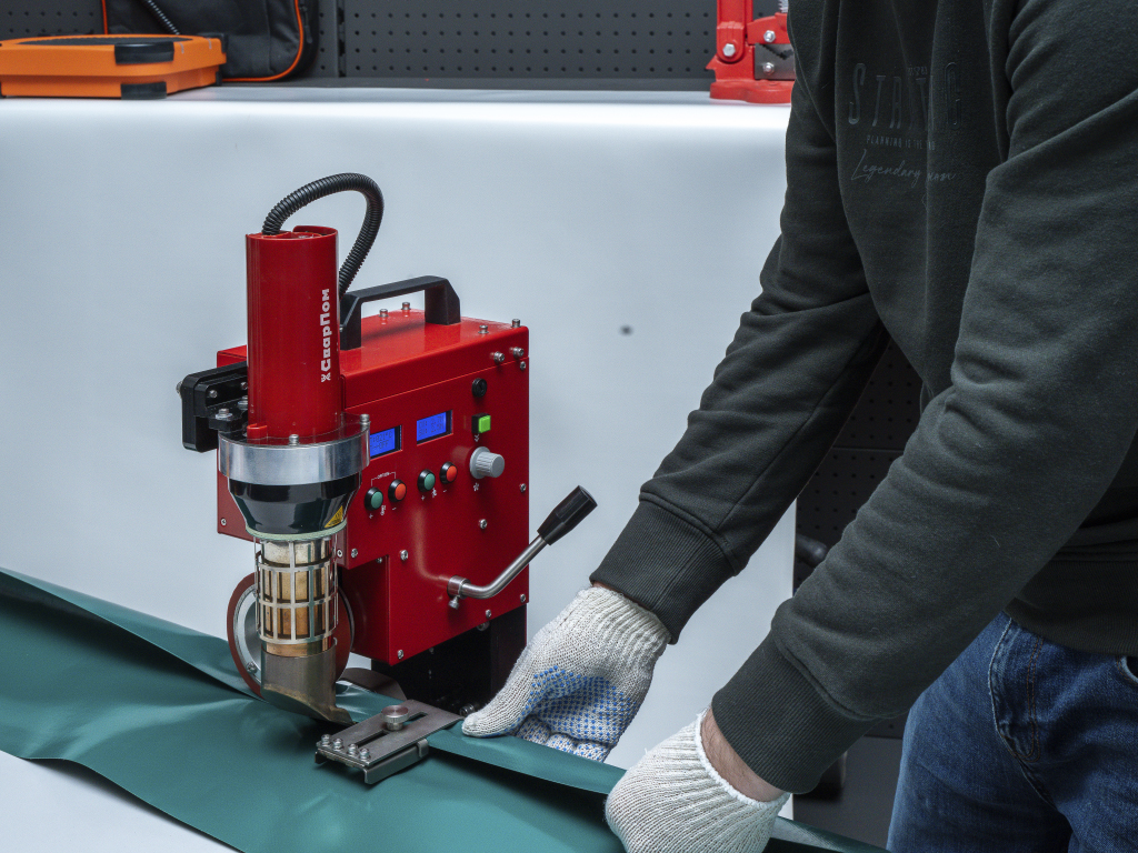 - Для эффективной сварки горячим воздухом полимерных технических тканей и пленок при производстве укрывных тентов, автомобильных тентов, павильонов, укрывных пленок для сельского хозяйства и строительства, биотопов, бассейнов, промышленных завес, рекламных баннеров и т.д.