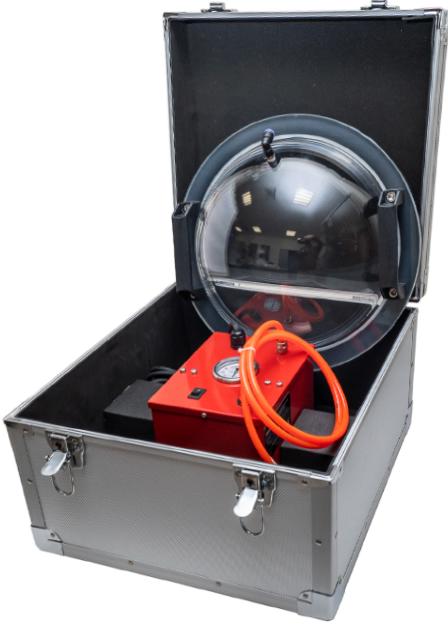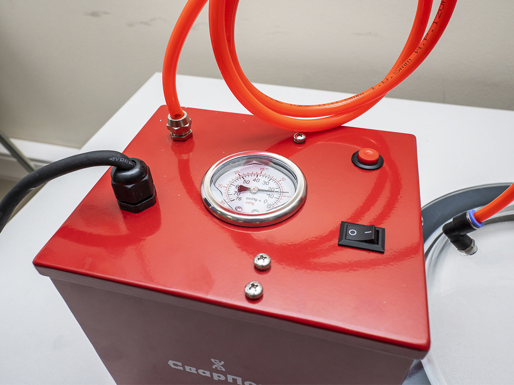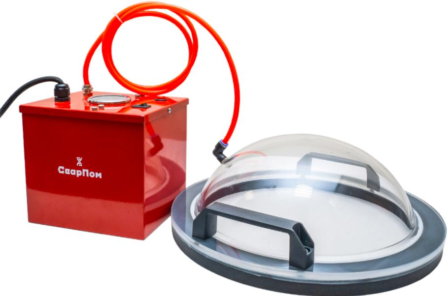 - Устройство представляет собой прозрачную полусферу с мягким обтюратором на торце и вакуумных насос. Давление контролируется по манометру.