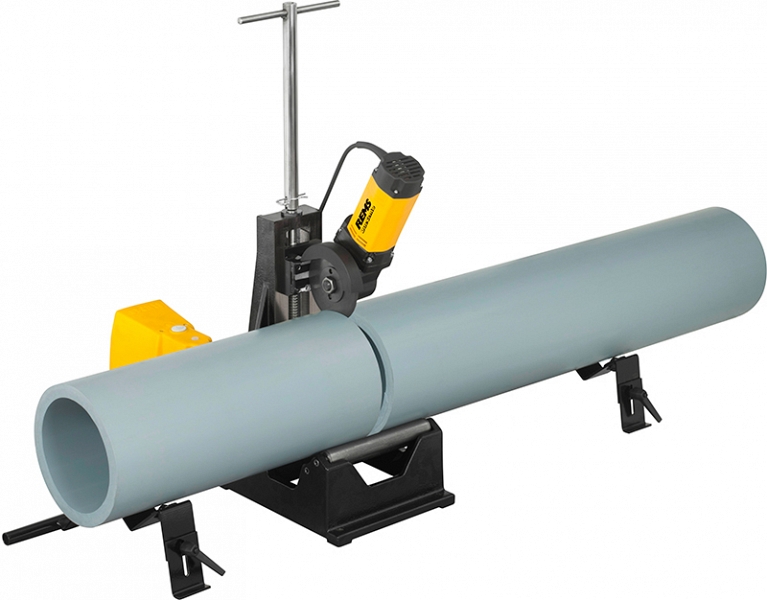 - Rems DueCento Базовый. Труборез для быстрой резки труб Ø 40 – 225 мм под прямым углом, без внешних заусенцев. Для труб систем запрессовки из нержавеющей стали, углеродистой стали, меди, Ø 54 – 225 мм. Для стальных труб EN 10255 (DIN 2440) DN 50 – 150, Ø 2" – 6", чугунных труб (SML) EN 877 (DIN 19522) DN 50 – 200, пластмассовых труб SDR 11, толщина стенки s ≤ 21 мм, Ø 40 – 225 мм, композитных труб Ø 40 – 110 мм. С ненуждающимся в уходе редуктором, универсальным двигателем 230 В, 50 / 60 Гц, 1200 Вт. Число оборотов 115 об/мин. Рабочие ролики из закаленной прецизионной стальной трубы для труб Ø 100 – 225 мм (4" – 6"). Педальный выключатель. Кольцевой ключ. Без режущего диска. 2 регулируемые по высоте подставки под трубы Ø 100 – 225 мм (4" – 6"). В коробке